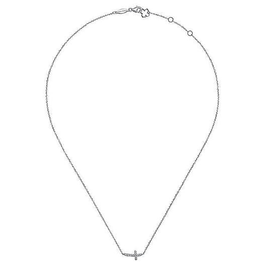 Gabriel & Co. NK4345W45JJ 14K White Gold Sideways Curved Diamond Cross Necklace