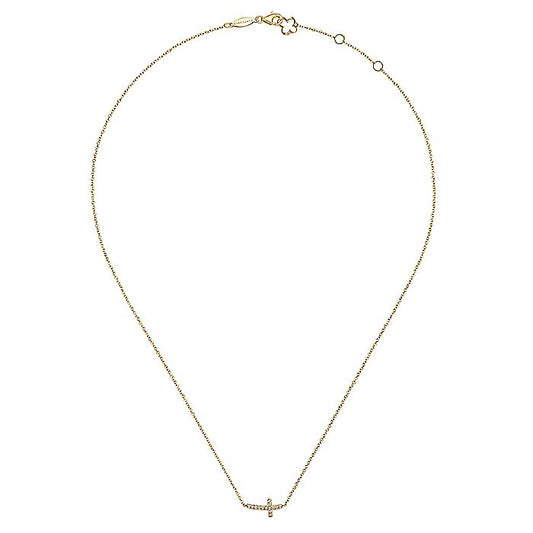 Gabriel & Co. NK4345Y45JJ 14K Yellow Gold Sideways Curved Diamond Cross Necklace