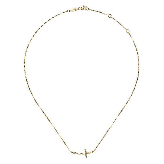 Gabriel & Co. NK4346Y45JJ 14K Yellow Gold Sideways Curved Diamond Cross Necklace