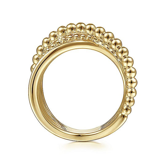 Gabriel & Co. LR51967Y4JJJ 14K Yellow Gold High Polished Bujukan Bead Criss Cross Ring