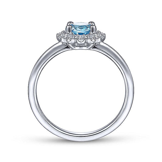 Gabriel & Co. LR52024W45BT 14K White Gold Round Blue Topaz and Diamond Halo Ring