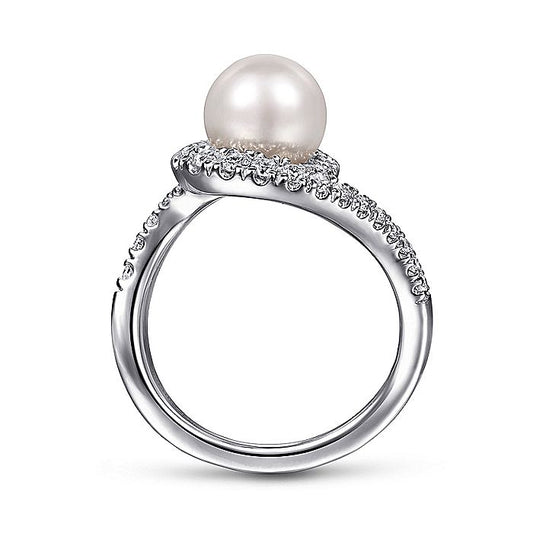 Gabriel & Co. LR51812W45PL 14K White Gold Bypass Pearl and Diamond Ring