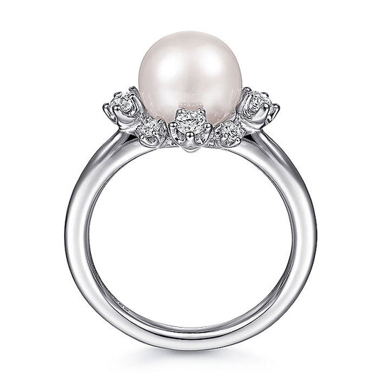 Gabriel & Co. LR51811W45PL 14K White Gold Pearl Ring with Bursting Diamond Halo