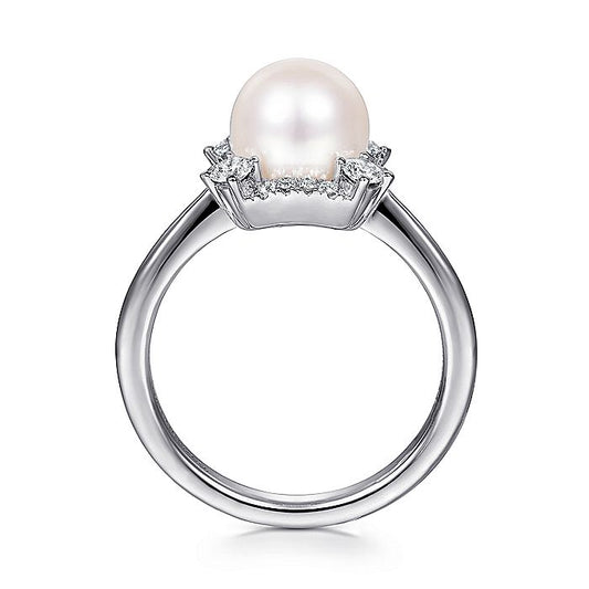 Gabriel & Co. LR51814W45PL 14K White Gold Pearl Ring with Diamond Halo