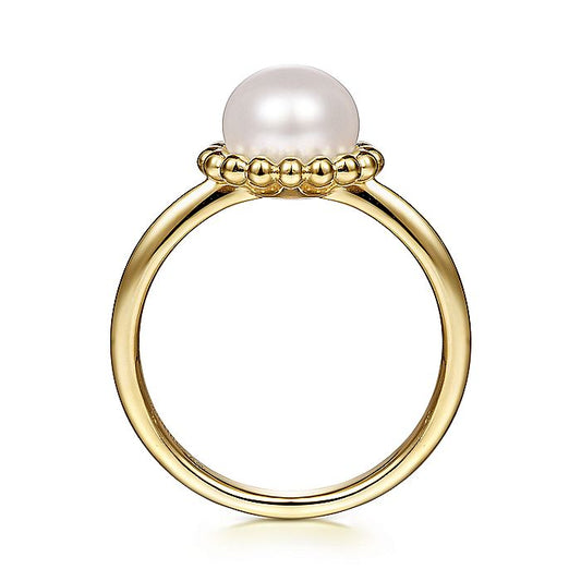 Gabriel & Co. LR51835Y4JPL 14K Yellow Gold Pearl Ring with Bujukan Beaded Halo