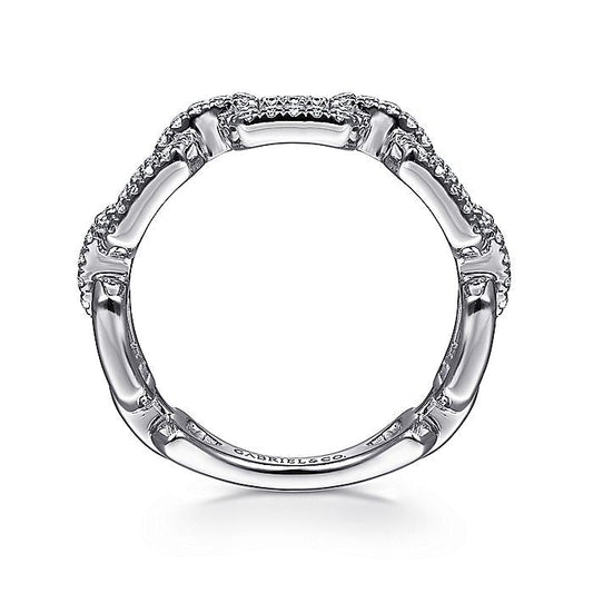 Gabriel & Co. LR51249W45JJ 14K White Gold Pavé Diamond Chain Link Ring Band