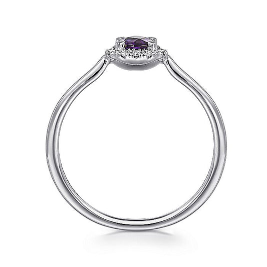Gabriel & Co. LR51264W45AM 14K White Gold Amethyst Diamond Halo Promise Ring