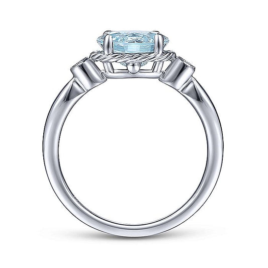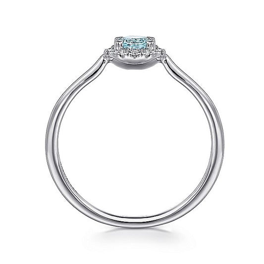 Gabriel & Co. LR51264W45AQ 14K White Gold Aquamarine Diamond Halo Promise Ring