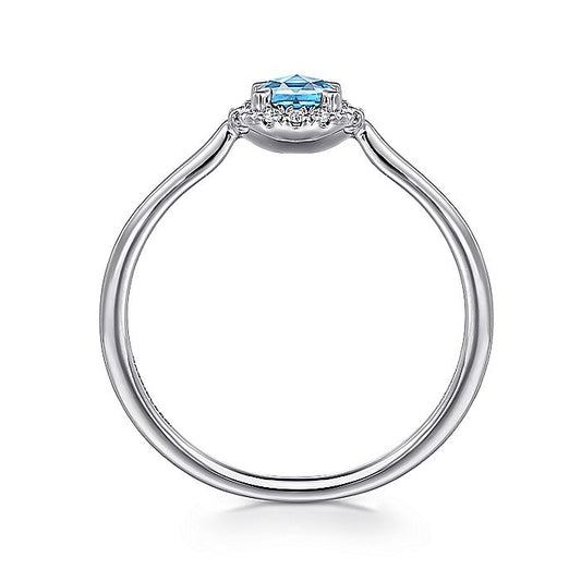Gabriel & Co. LR51264W45BT 14K White Gold Blue Topaz and Diamond Halo Promise Ring