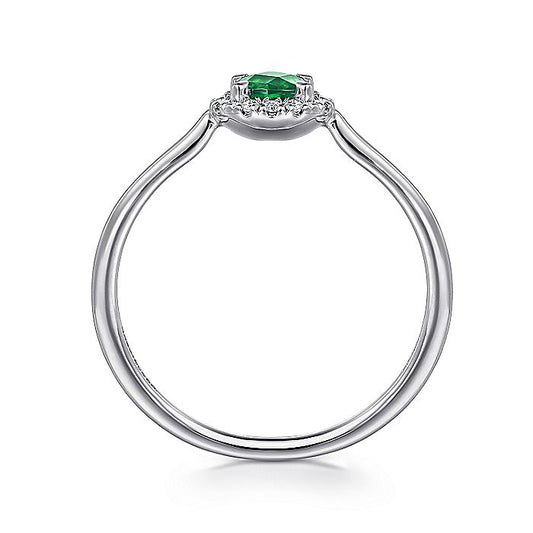 Gabriel & Co. LR51264W45EA 14K White Gold Emerald and Diamond Halo Promise Ring