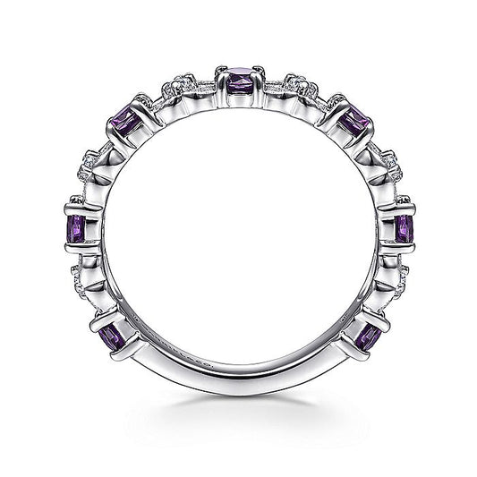 Gabriel & Co. LR4928W45AM 14K White Gold Alternating Amethyst and Diamond Station Ring