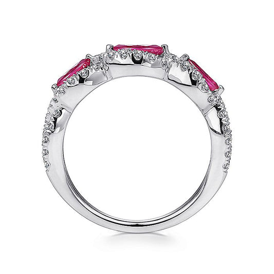 Gabriel & Co. LR50257W45RA 14K White Gold Twisted Diamond Rows and Ruby Marquise Stones Ring