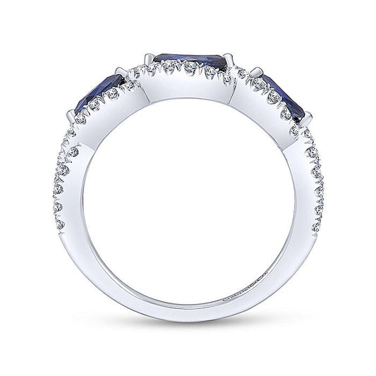 Gabriel & Co. LR50257W45SA 14K White Gold Twisted Diamond Rows and Sapphire Marquise Stones Ring