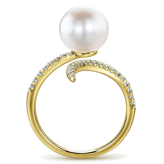 Gabriel & Co. LR51116Y45PL 14K Yellow Gold Pavé Diamond & Cultured Pearl Ring