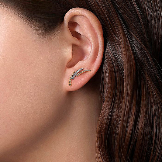 Gabriel & Co. EG13990M45JJ 14K Yellow-White Gold Triple Split Curved Bar Bujukan Diamond Stud Earrings