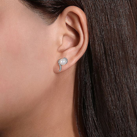 Gabriel & Co. EG14046W45PL 14K White Gold Pearl and Diamond J Stud Earrings