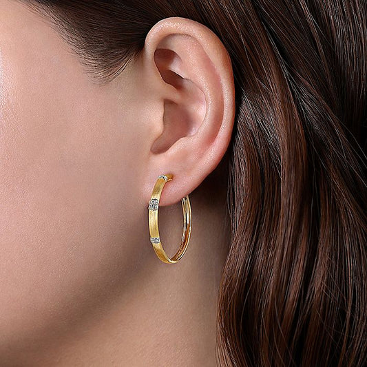 Gabriel & Co. EG14068M45JJ 14K White-Yellow Gold 30MM Classic Diamond Hoop Earrings