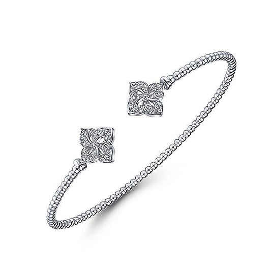 Gabriel & Co. BG4256-62W45JJ 14K White Gold Bujukan Split Cuff Bracelet with Diamond Flower Caps