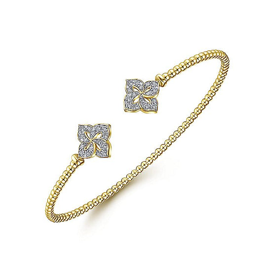 Gabriel & Co. BG4256-62Y45JJ 14K Yellow Gold Bujukan Split Cuff Bracelet with Diamond Flower Caps