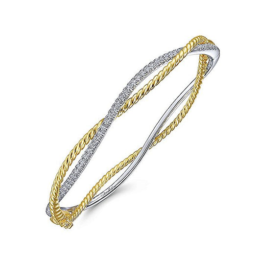 Gabriel & Co. BG4307-62M45JJ 14K Yellow-White Twisted Rope and Diamond Bangle Bracelet