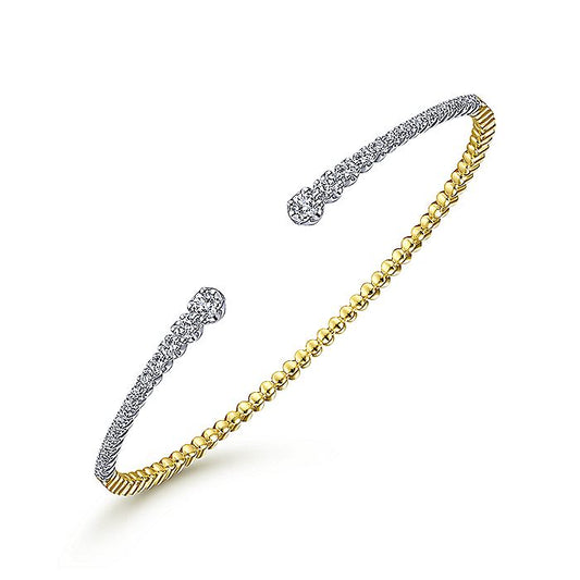 Gabriel & Co. BG4342-62M45JJ 14K White & Yellow Gold Bujukan Bead Split Cuff with Round Diamond Pavé Caps