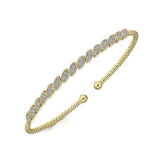 Vendor:Gabriel & Co.Gabriel & Co. BG4278-62M45JJ 14K Yellow Gold Bujukan Bead Bypass Bangle with Graduating Diamond Caps