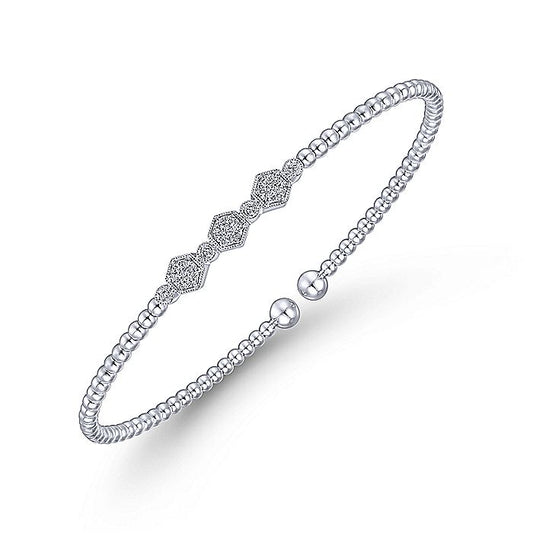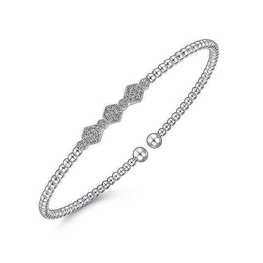Gabriel & Co. BG4117-62W45JJ 14K White Gold Bujukan Bead Cuff Bracelet with Cluster Diamond Hexagon Stations