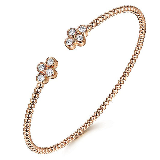 Gabriel & Co. BG4124-62K45JJ 14K Rose Gold Bujukan Bead Split Cuff Bracelet with Quatrefoil Diamond Endcaps