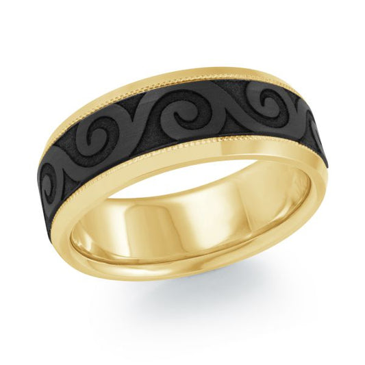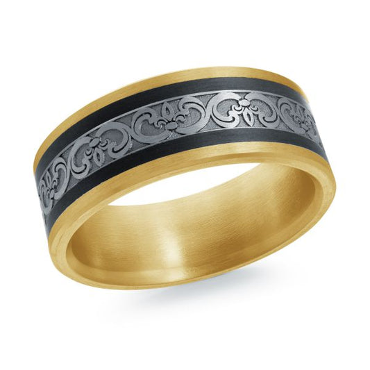 Malo 14K Carbon Fiber and Yellow Gold Men's 8mm Wedding Band MRDA-044-8W