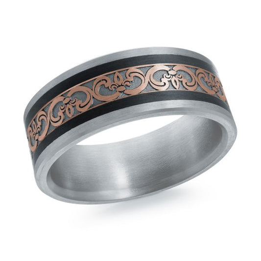 Malo 14K Carbon Fiber and Rose Gold Men's Wedding Band 8mm MRDA-043-8W