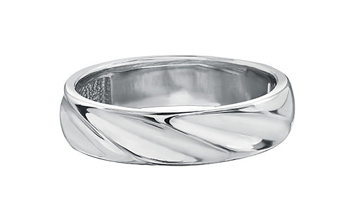 10kt White Gold 6mm Scratched Detailed Center Men's Wedding Band