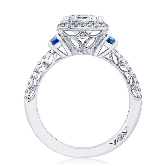 Princess 3-Stone Engagement Ring with Blue Sapphire
