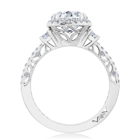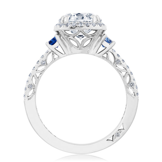 Cushion 3-Stone Engagement Ring with Blue Sapphire
