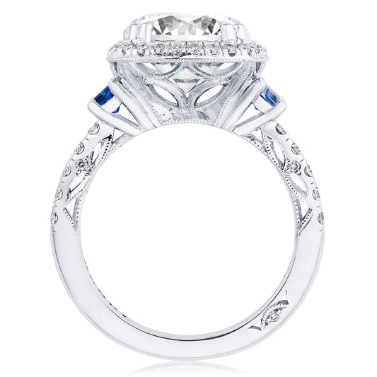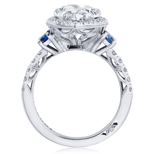 Oval 3-Stone Engagement Ring with Blue Sapphire