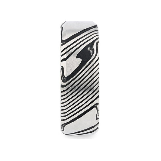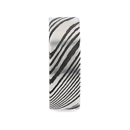 GHOST Grey Damascus Steel Brushed Beveled Men's Wedding Band with Repeating Artisan Pattern - 6mm & 8mm