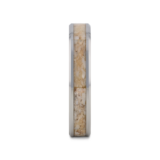 MESOZOIC Men's Tungsten Flat Beveled Wedding Ring with White Dinosaur Bone Inlay - 4mm