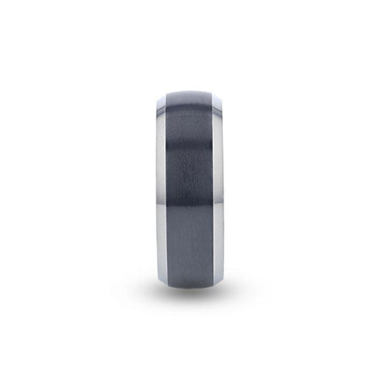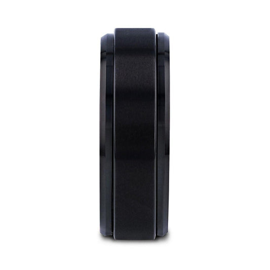 NOLAN Brushed Domed Black Titanium Wedding Band with Polished Beveled Edges - 8mm
