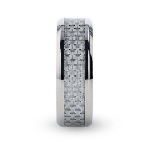 TANTALUS Beveled Edge Titanium Ring with White Carbon Fiber Inlay - 8mm