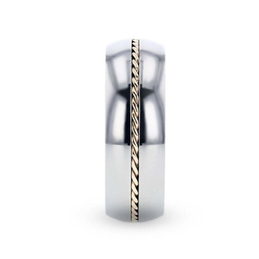CHRISTIAN Titanium Domed Polished Men 's Wedding Ring With 14k Yellow Gold Braided Inlay - 8mm