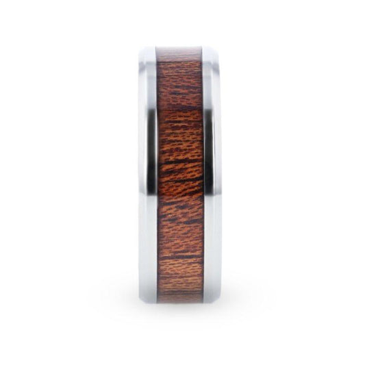Vendor:ThorstenAuthorized DealerMELIA Mahogany Wood Inlaid Titanium Flat Polished Finish Men's Wedding Ring With Beveled Edges - 8mm