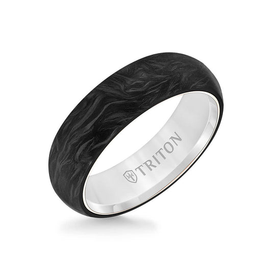 6MM White Tungsten Carbide Ring - Tire Tread Black Titanium Insert with Round Edge
