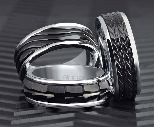 8MM Black Tungsten Carbide Ring - Tire Tread Black Titanium Insert with Round Edge