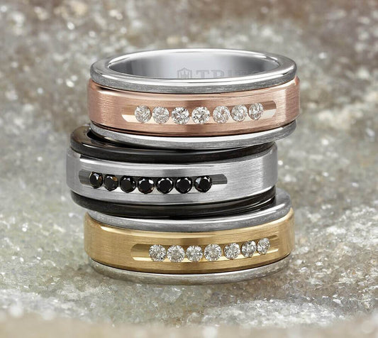 8MM Tungsten Diamond Ring - Vertical Channel Set Silver Satin Finish and Bevel Edge