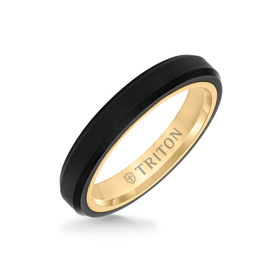 4MM Tungsten Raw Black DLC + 14K Gold Ring - Bevel Edge with 14K Gold Interior