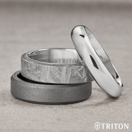 4MM Tungsten Carbide Ring - Meteorite Flat Profile with Bevel Edge