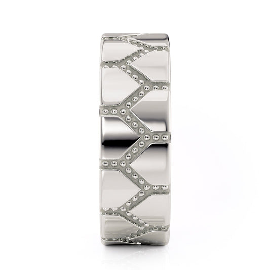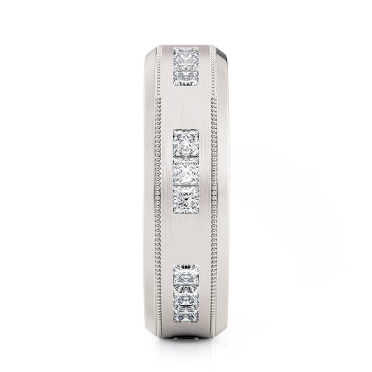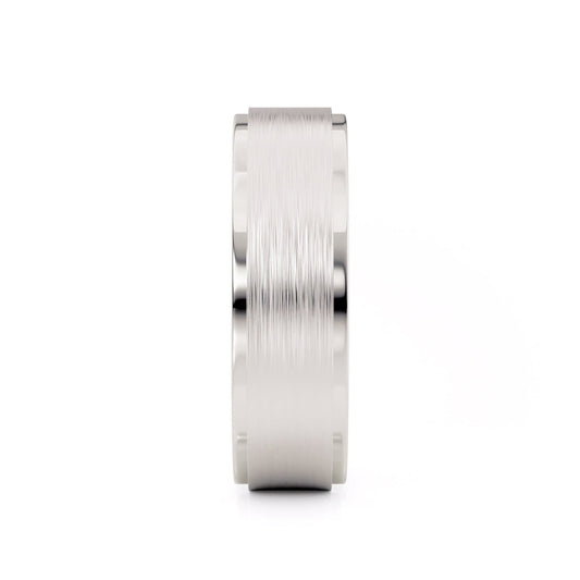 7MM Men's Contemporary Wedding Band - Bright Brush Finish and Round Edge with Inside Diamond Pattern and Rope Edge