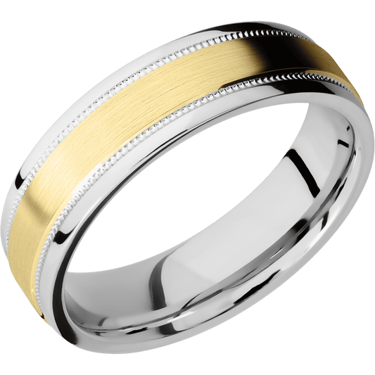 14K White Gold with Satin Finish and 14K Yellow Gold Inlay
