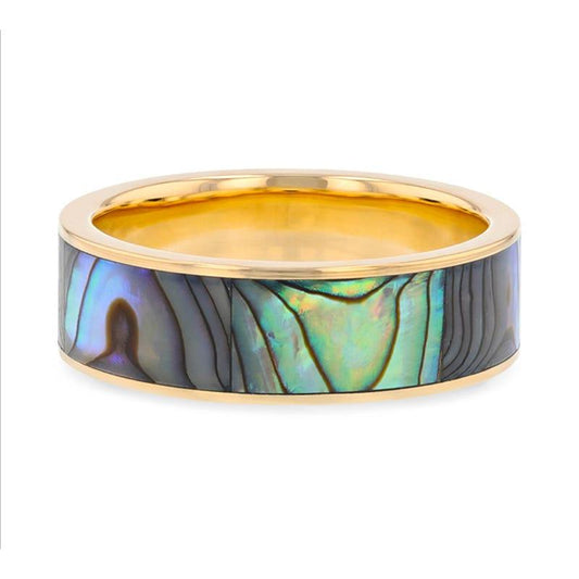 GALAN Flat 14K Yellow Gold Ring with Mother of Pearl Inlay and Polished Edges - 8mm