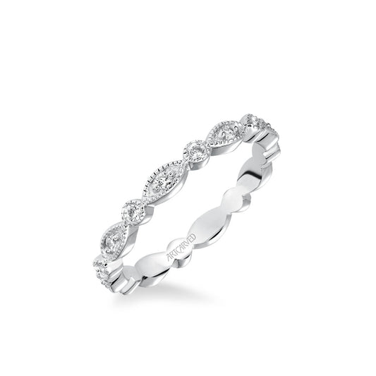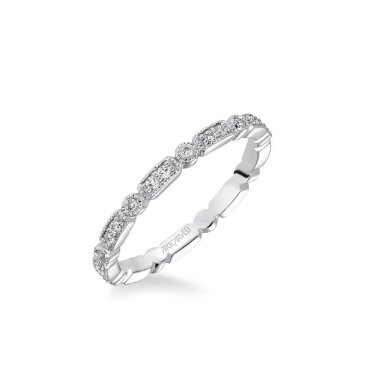 Stackable Band with Diamond and Milgrain Alternating Multi-Shape Design