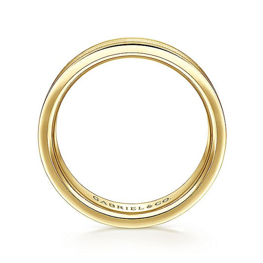 Gabriel & Co. MBH0139-60Y4JJJ 14K Yellow Gold 6mm - Satin Milgrain Channel Men's Wedding Band